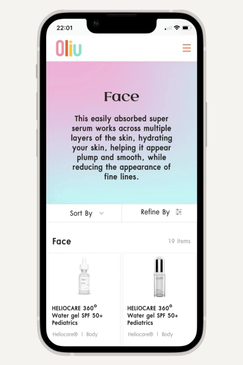 Oliu, a multi-brand skincare platform, offers medical skincare products and personalized skin care advice. I designed user interfaces and design systems for enhanced online purchasing journeys.
